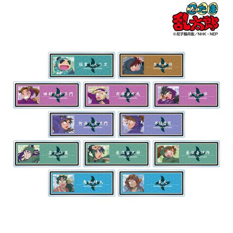 福富しんべヱ、土井半助、田村三木ヱ門、藤タカ丸、浜守一郎、竹谷八左ヱ門、不破雷蔵、立花仙蔵、食満留三郎、善法寺伊作、鬼蜘蛛丸、義丸のイラストを新たなタッチで魅力的に表現し、アクリルネームプレートに仕上げました。