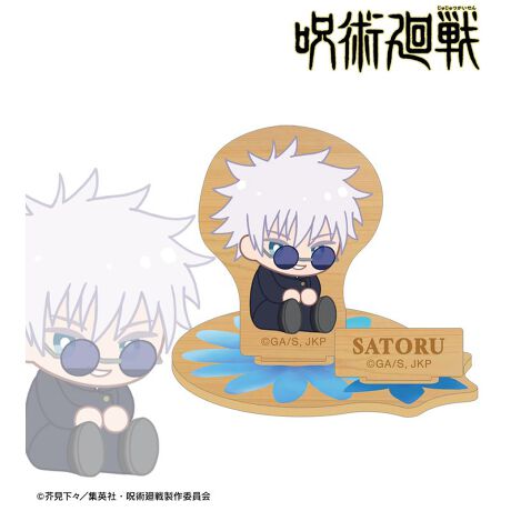 五条 悟のイラストをボタニカルデザインに落とし込んで繊細なタッチで新たに描き起こし、パーツ付きのウッドスタンドに仕上げました。