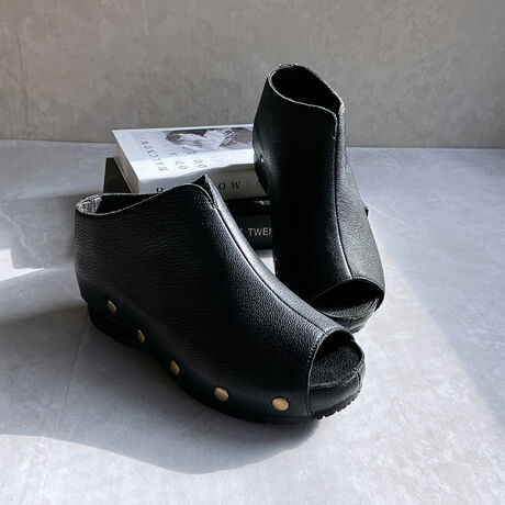 アッパーからアウトソール側面まで、同素材の本革を贅沢に使用した存在感のあるオープントゥブーティ。