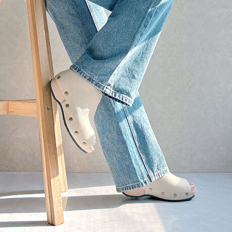 サイドにあしらわれたスタッズが程よいアクセントとなり、シンプルながらも足元にさりげない個性をプラスします。