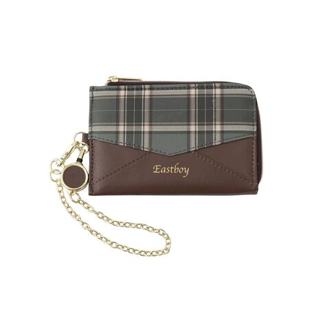 EASTBOYのブランドネームの箔押しが大人可愛い人気のチェック柄のパスケース。ファスナー付きなので小銭や切符など小物も入れられます。ストラップ部分はリールになっており、タッチ&ゴーに最適な仕様。合成皮革のためお手入れも簡単で丈夫です。
