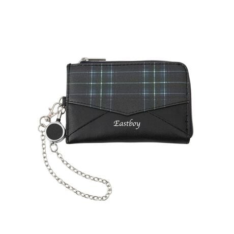 EASTBOYのブランドネームの箔押しが大人可愛い人気のチェック柄のパスケース。ファスナー付きなので小銭や切符など小物も入れられます。ストラップ部分はリールになっており、タッチ&ゴーに最適な仕様。合成皮革のためお手入れも簡単で丈夫です。