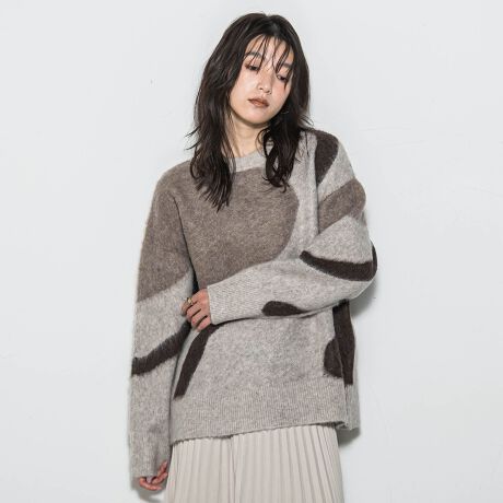 柔らかな色の重なりが印象的なマーブル柄ニット。