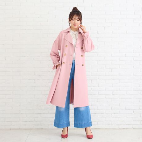 ・袖にたっぷりとギャザーを入れた、女性らしいシルエットのトレンチコート