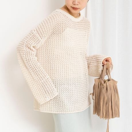 ・ルーズシルエットのメッシュ編みは、着るだけでこなれた雰囲気