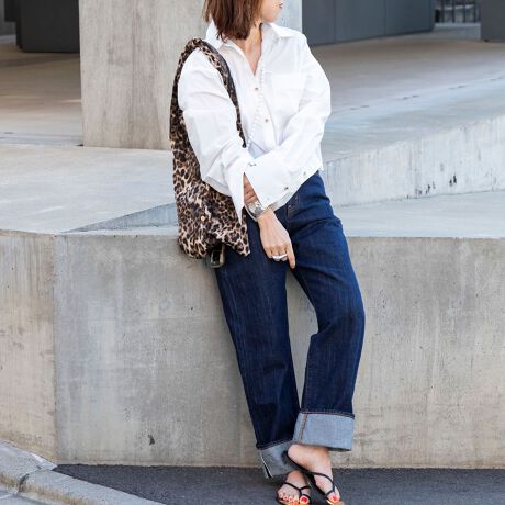 ・今季は、ショート丈とのバランスが新鮮な太めのストレートスリーブとゴールドボタンがデザインポイント