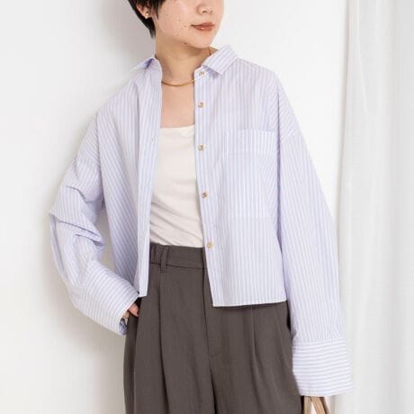 ・今季は、ショート丈とのバランスが新鮮な太めのストレートスリーブとゴールドボタンがデザインポイント