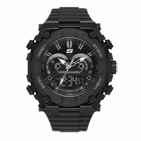 大胆でスポーティなスタイルと精確なタイムキーピングの融合。アクティブなライフスタイルに対応するSkechersウォッチ。耐久性に優れた50mmのプラスチックケース、アナログデジタル クロノグラフディスプレイ、着け心地の良いポリウレタンストラップを備えています。ブラックのセミグロスダイヤルが、スポーティでありながら洗練された雰囲気を演出しています。手元のスタイルをグレードアップするウォッチです。