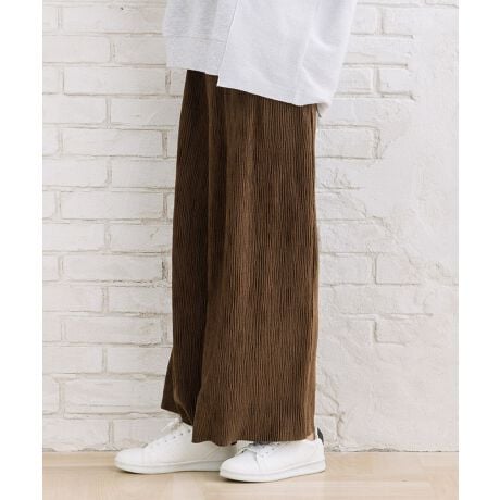 【上品な光沢感が魅力の、ベロアプリーツパンツ】