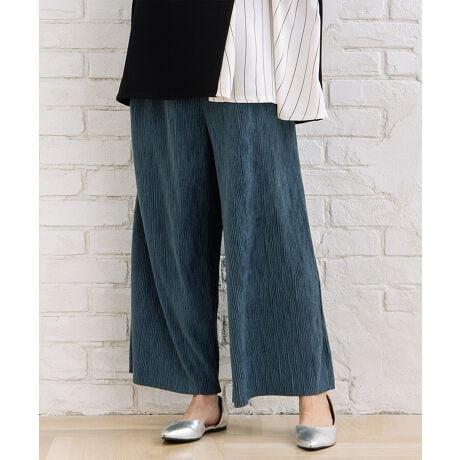 【上品な光沢感が魅力の、ベロアプリーツパンツ】