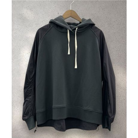 #大きいサイズコーデ #sabstreet #パーカー #異素材ミックス #ナイロンタフタ #大人カジュアル #デイリーコーデ