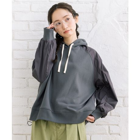 #大きいサイズコーデ #sabstreet #パーカー #異素材ミックス #ナイロンタフタ #大人カジュアル #デイリーコーデ