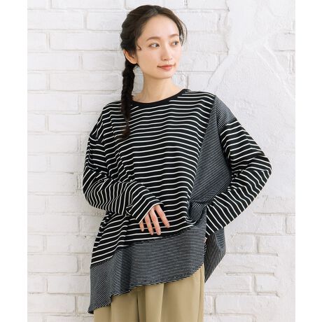 マルイウェブチャネル   /   トップス   /   Tシャツ・カットソー   /   【大きいサイズ】FONTLAB スイッチボーダーアシンメトリーカットソー