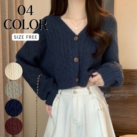 【ケーブル編みショートカーディガン】