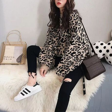 -トレンド感抜群!ゆったり着られるレオパード柄ニット