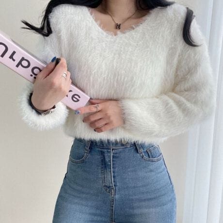 -ふわふわ質感で冬映えするフェザーヤーンニット