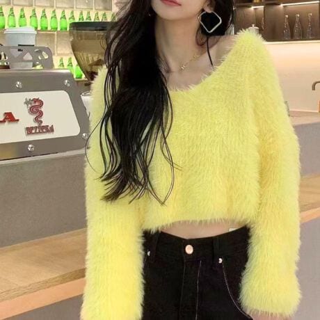 -ふわふわ質感で冬映えするフェザーヤーンニット