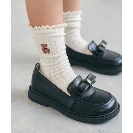 apres les cours(アプレレクール)のタイツ・ソックス「tiny bear レースフリルソックス」は、足元からおしゃれになれるデザイン。おようふくとのスタイリングも楽しんで。