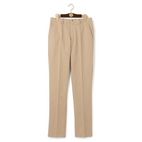 スラックスのようなたたずまいのコットンカジュアルパンツ。■機能性ストレッチ、家庭洗濯機洗い可能■素材インドの大手メーカーで作ったBCIコットンストレッチ素材です。繊細なピーチ感と綺麗な表面感が特徴です。■シルエット誰がはいてもきれいなラインと美シルエットなスリムタイプ。■仕様ドレスタイプのスラックスも縫製する工場で仕立てています。ただし、腰裏の仕様は簡易マーベルトタイプの軽い仕様。製品染め加工を施し、独特でニュアンスのあるカラーを表現しています。■コーディネート カジュアルカテゴリーのシャツやニット、アウターは勿論のこと、ドレス仕様のジャケットなどとも相性のよい万能アイテムです。■デザイナーコメントすっきりきれいで上品なたたずまいのパンツです。