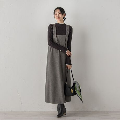 両面にほんのり起毛をかけた、ふっくら柔らかな風合いが魅力のジャンパースカート。