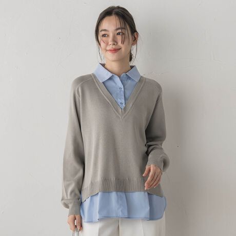 シャツとニットがセットになったレイヤードアイテム。