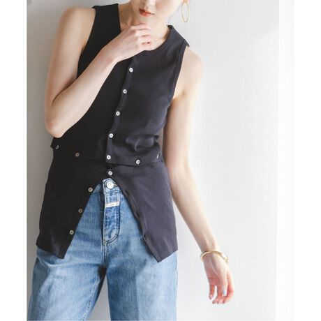 フロント、ウエストに配されたボタンとボタンの開閉次第で雰囲気が変わり着こなしを楽しめるのが最大の魅力。