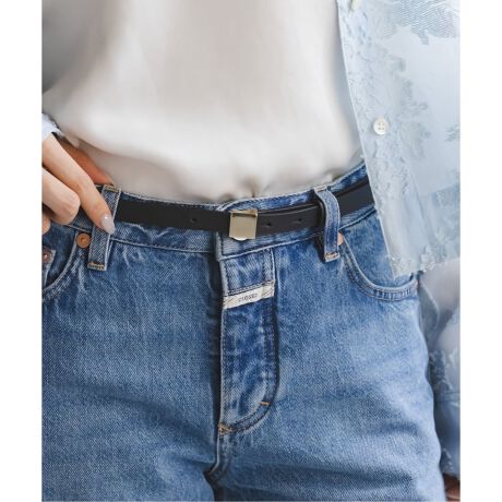 1.4cmほどのスクエアバックルのサイズ感なので使いやすく、カーディガンやジャケットの上から巻いたりとアレンジもおすすめ。