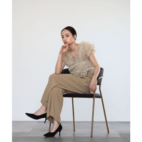 チュールのトップスとオールインワンのセットアイテム。