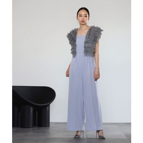 チュールのトップスとオールインワンのセットアイテム。