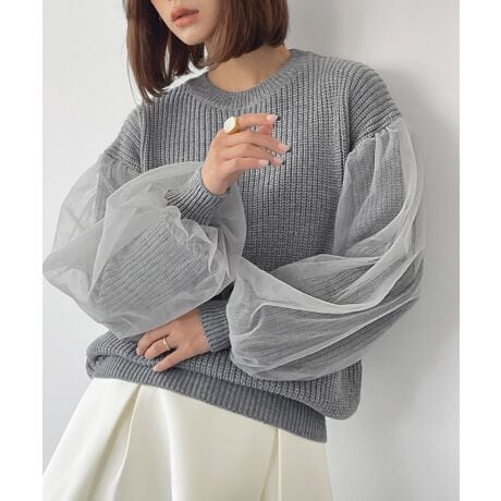 チュールスリーブニットプルオーバー