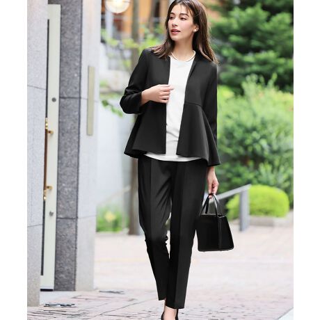 ノーカラーペプラムジャケット テーパードパンツ セットアップ スーツ フォーマル【洗える】