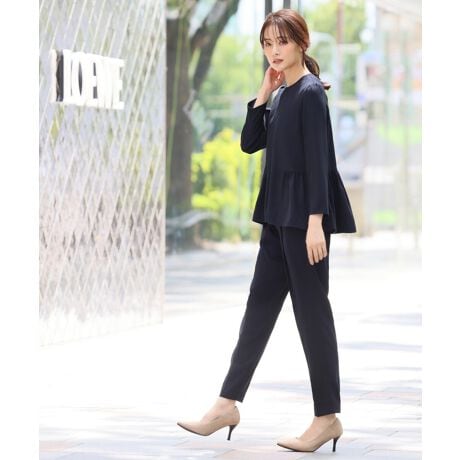 ペプラムギャザーブラウス テーパードパンツ セットアップ スーツ フォーマル セレモニー【洗える】