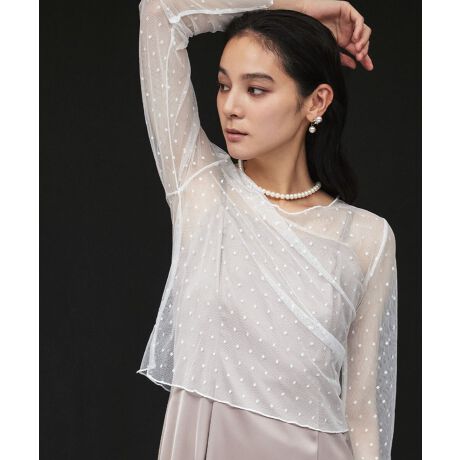 シースルートップス 長袖 ドット チュール レース メロウ メロー シアートップス