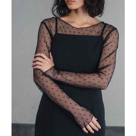 シースルートップス 長袖 ドット チュール レース メロウ メロー シアートップス