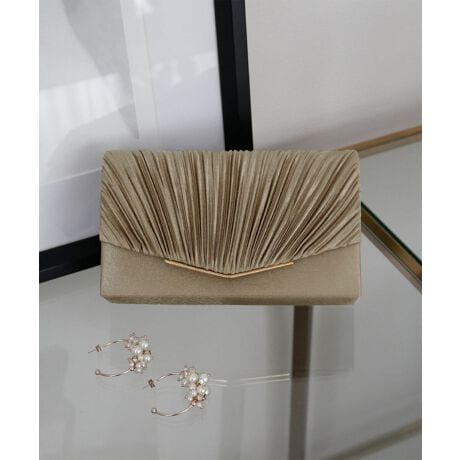 プリーツ加工を施したサテン生地が上品なパーティーバッグ。