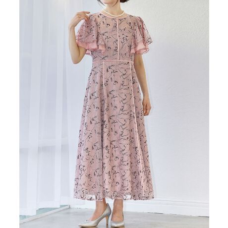 チュールに花模様の刺繍を施したエレガントなラッフルドレス。