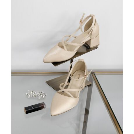 クロスストラップチャンキーヒール ポインテッドトゥ パンプス 結婚式 パーティー オケージョン
