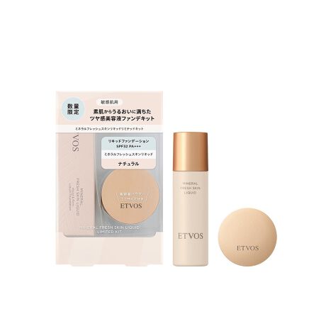 [型番:4580682137363]エトヴォス人気の美容液ファンデーションにフェイスパウダーのミニサイズ(非売品)が付いた、ファンデーションのカラーが選べる限定キット。美容液ファンデーションとフェイスパウダーのダブル使いで、ツヤ感あふれる肌※1に仕上がります。<セット内容>ミネラルフレッシュスキンリキッド #ライト または #ナチュラル 30mL(現品)ミネラルリフレクティングスキンパウダー #ルーセントエクリュ 0.8g(ミニ容器)※1 メイクアップ効果による