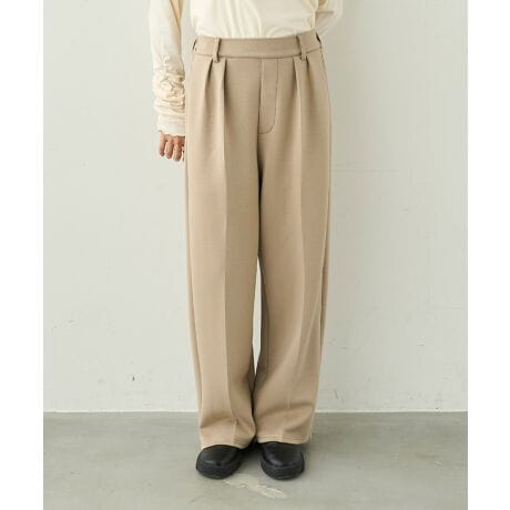 落ち感のあるワイドラインが脚のラインを拾わず、すっきりとした印象で着用できます。