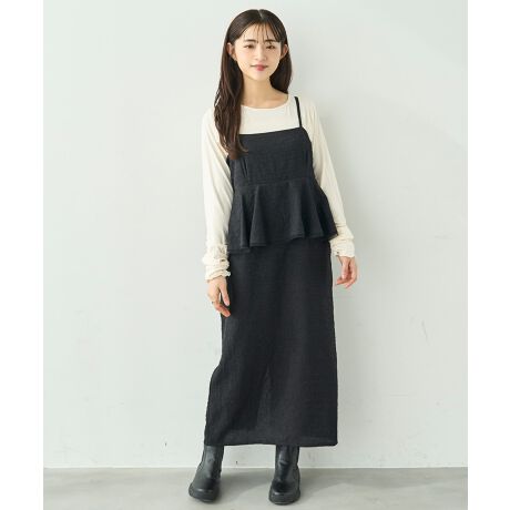 立体感のあるふくれジャガード素材が、装いに奥行きと表情をもたらすキャミワンピース。