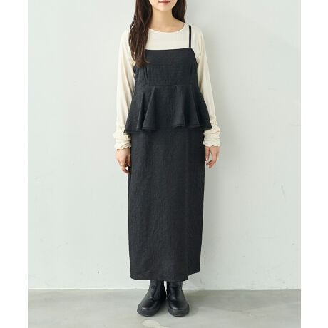 立体感のあるふくれジャガード素材が、装いに奥行きと表情をもたらすキャミワンピース。
