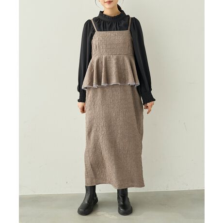 立体感のあるふくれジャガード素材が、装いに奥行きと表情をもたらすキャミワンピース。