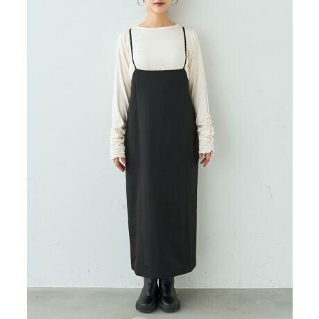 女性らしい華奢なストラップのサスペンダースカート。