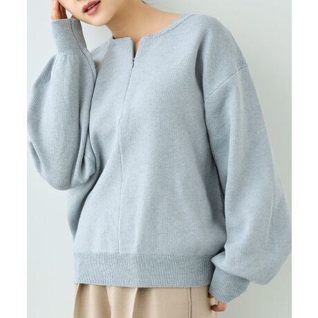 カジュアルさと上品さを兼ね備えた、スウェットライクなニットトップス。