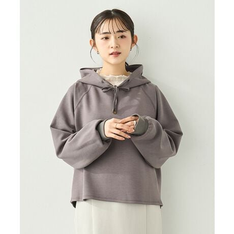 さらりとした肌触りが心地よい、ダンボールスウェット素材のクロップドパーカー。