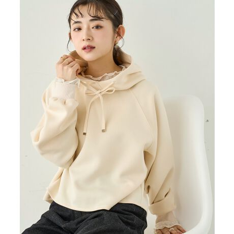 さらりとした肌触りが心地よい、ダンボールスウェット素材のクロップドパーカー。