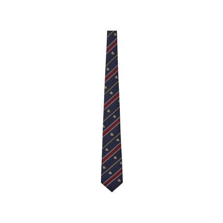 トラディショナルなラインと紋章にラメを入れたネクタイ。後ろ側に共地で小剣通し(ループ)がついています。イーストボーイのリボン・ネクタイは生地から縫製まで全て日本製。手作業で丁寧に作られているので温かみのある製品に仕上がっています。シャツやニット、女神のカラーにもベストマッチな色柄が揃っています。