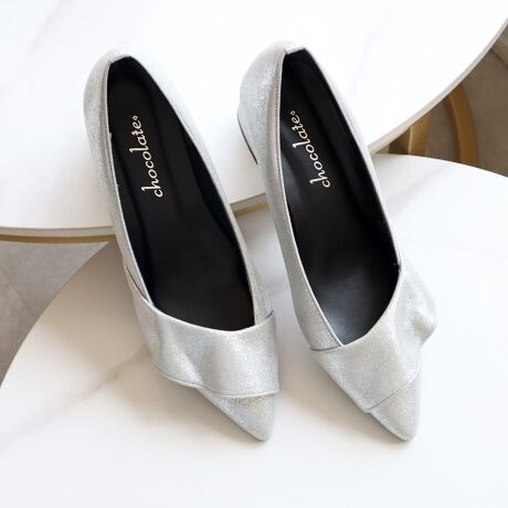 甲に大きなフリルが付いた美しいシルエットのパンプスです。