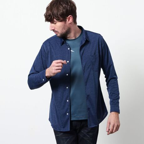 衿先にワイヤ−を仕込んだショートレギュラーカラ−シャツ。