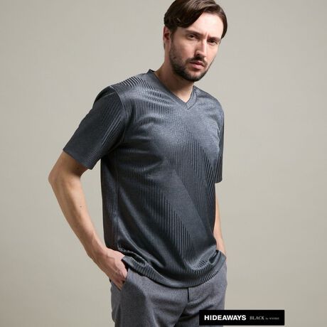 様々なスタイルに合せやすい浅めのVネックとサイドスリットがポイントのシンプルな半袖カットソーです。